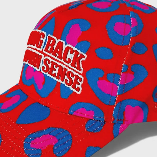 Make a bold statement with this "Bring Back Common Sense" baseball cap. Featuring an eye-catching leopard print design in vibrant blue and hot pink, this cap delivers attitude and style in equal measure. The striking color combination and wild print make it perfect for everyday wear, outdoor adventures, or as a conversation-starting gift. Rock the message and the look with a cap that's as distinctive as you are.