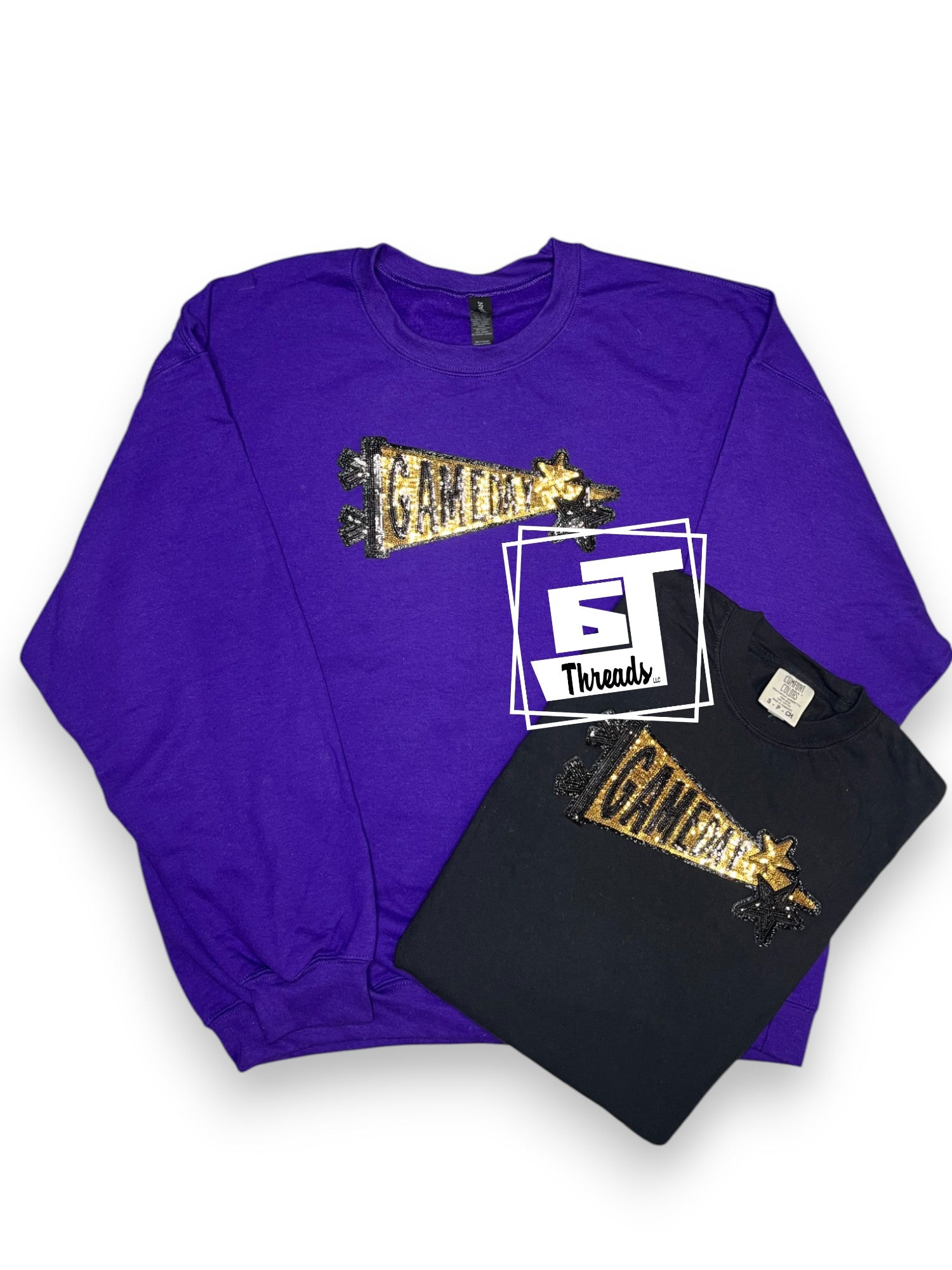 The Gold Sequin Gameday Pennant features radiant gold sequins expertly crafted into a traditional pennant shape. This striking embellishment adds a luxurious shimmer and bold visual appeal to game day apparel or accessories. Designed for durability, it retains its vibrant sparkle over time, offering fans a refined and spirited way to showcase their team pride with lasting style.