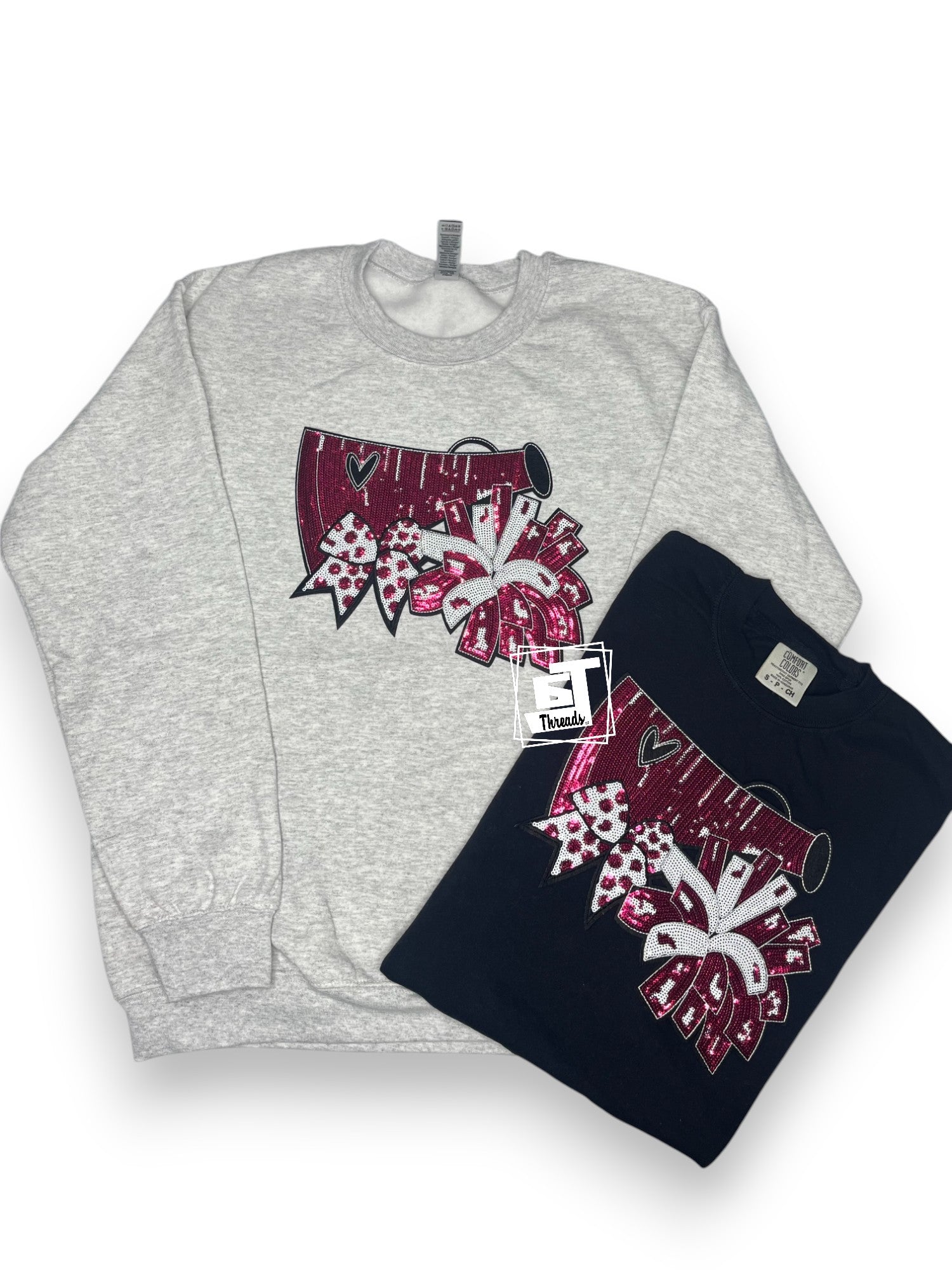 This sweatshirt features a vibrant pink sequin cheer megaphone design, adding sparkle and spirit to your casual wardrobe. Crafted for comfort and style, it’s perfect for cheerleaders or fans looking to showcase their enthusiasm with a touch of shimmer and durability.
